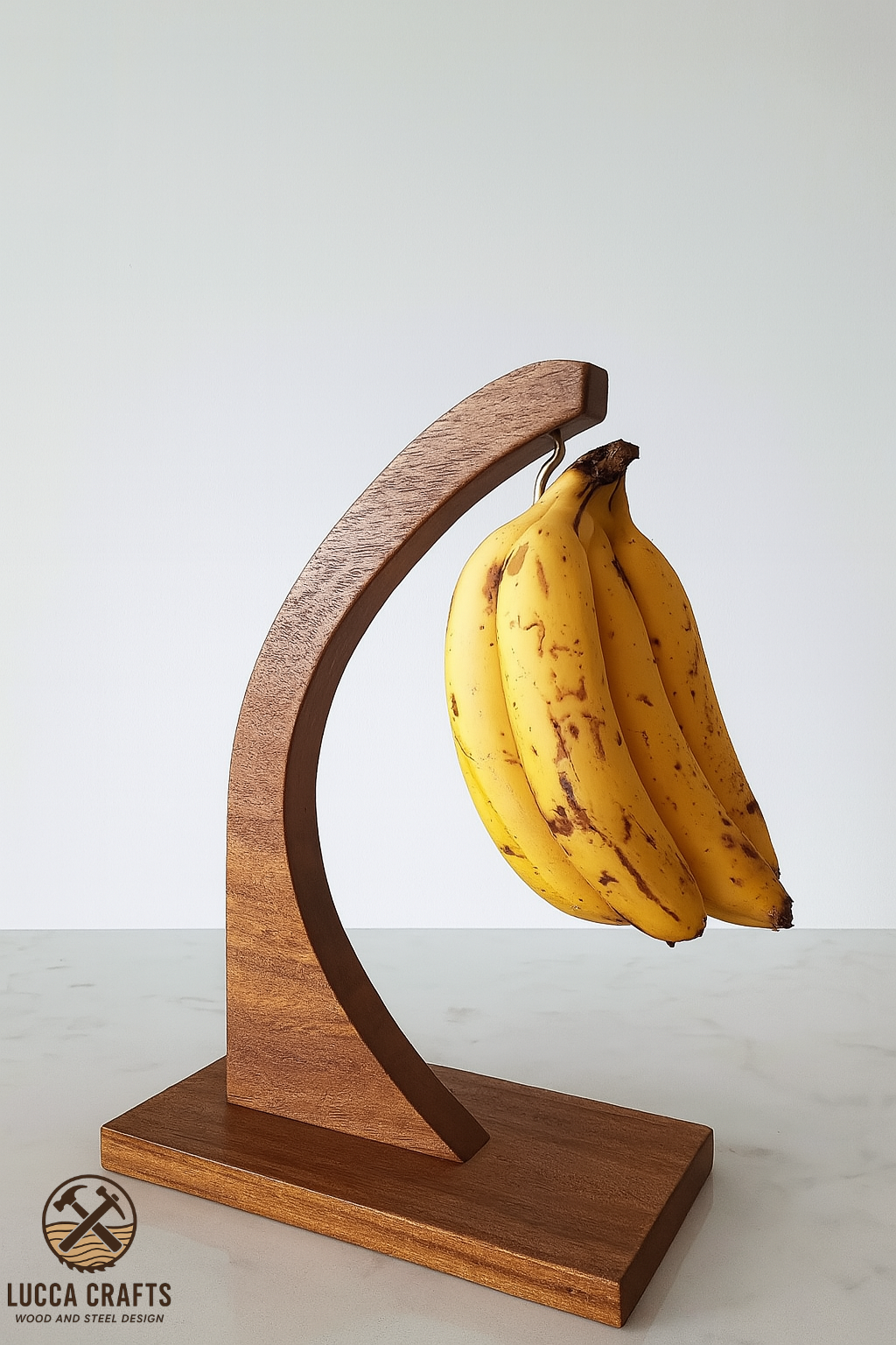 Este suporte de bananas é mais do que um acessório de cozinha — é uma peça de design que une forma e propósito. Produzido artesanalmente em madeira maciça de reaproveitamento, seu arco curvo e minimalista valoriza a fruta, evita machucados por contato e favorece a maturação uniforme.